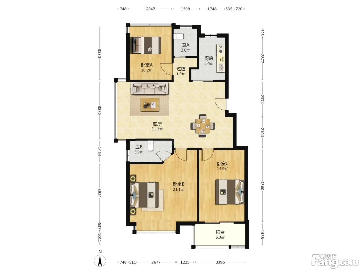 3室2厅1卫