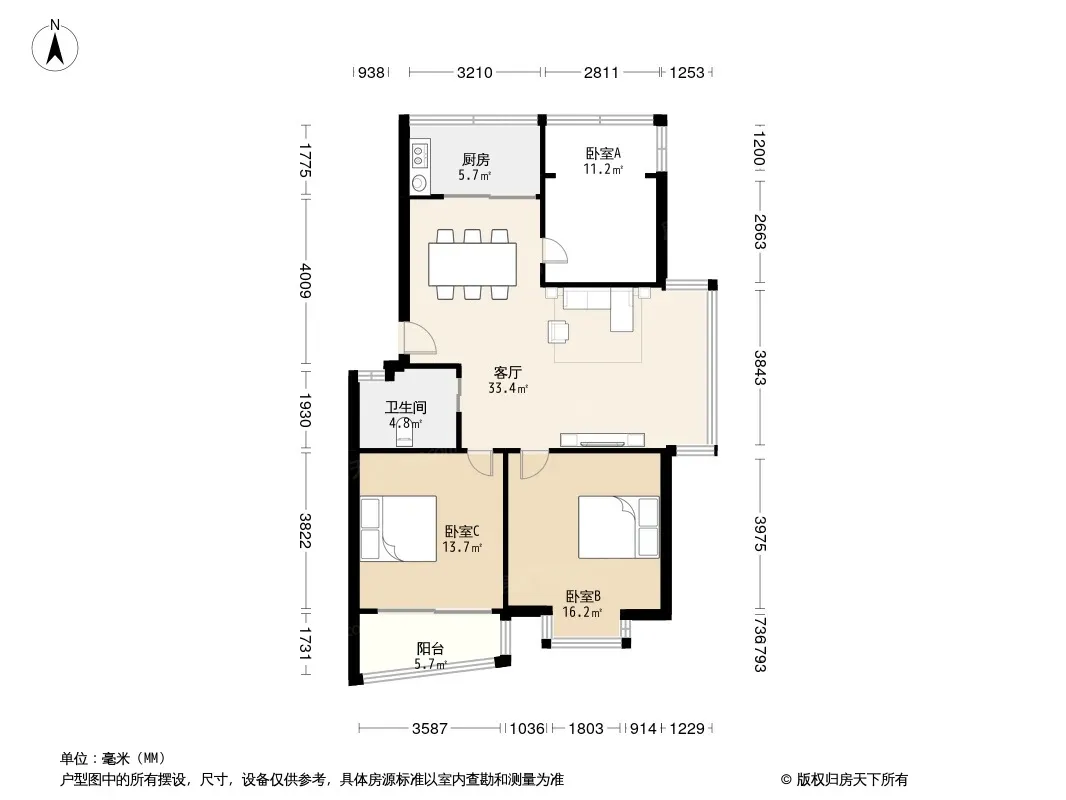 户型齐全,主打户型方正,明厨,明卫,客厅朝南,双阳台三居