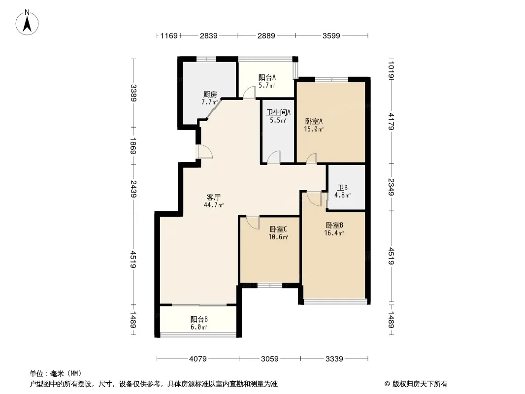户型齐全,主打户型方正,明厨,客厅朝南,双卧朝南三居