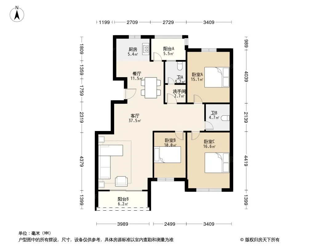 户型齐全,主打户型方正,明厨,客厅朝南,双卧朝南三居