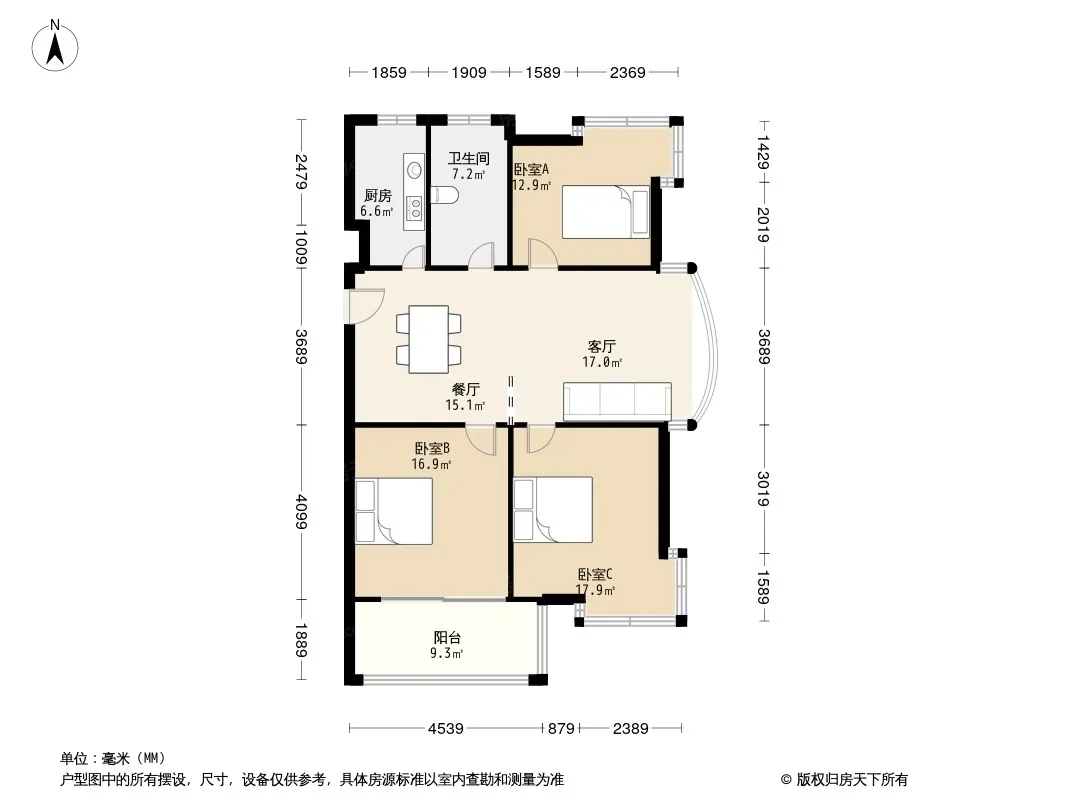 户型齐全,主打户型方正,明厨,明卫,客厅朝南三居