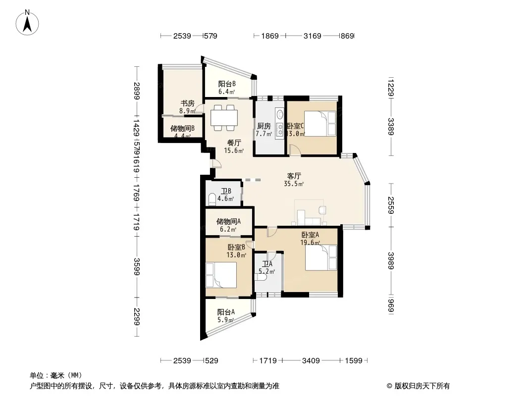 户型齐全,主打户型方正,明卫,独立衣帽间,客厅朝南,双阳台三居