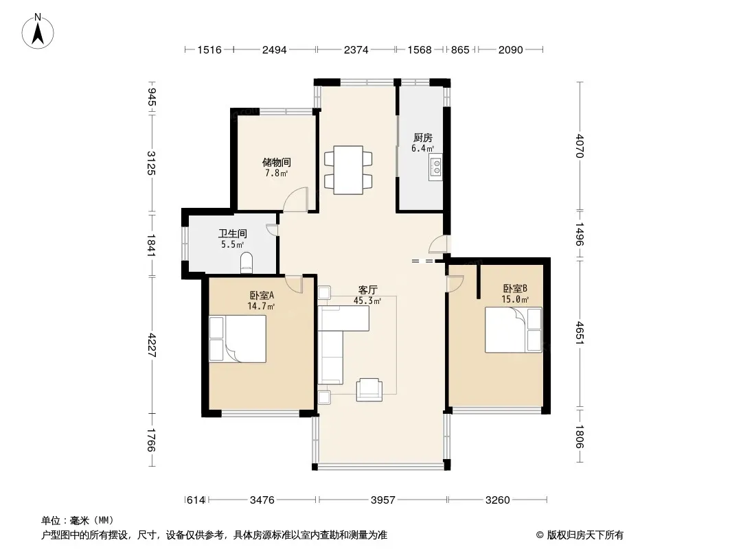 户型格局南北格局,楼层好,视野开阔,采光充足