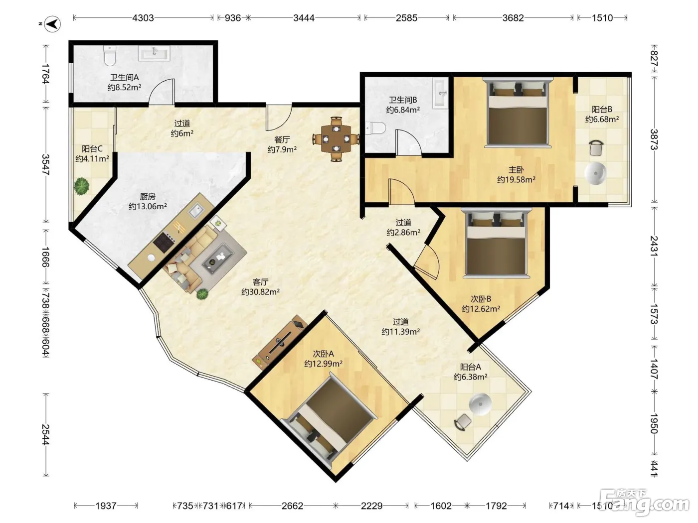 户型齐全,主打明卫,双阳台三居