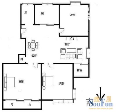 户型齐全,主打户型方正,明卫,明厨,客厅朝南,主卧朝南三居