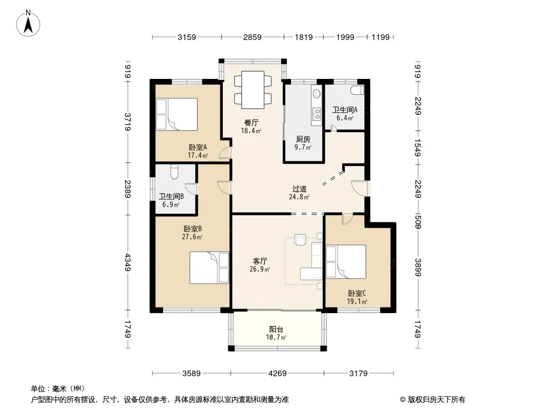 户型齐全,主打户型方正,明卫,明厨,客厅朝南三居