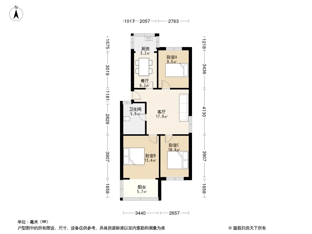 户型齐全,主打户型方正,明卫,明厨,客厅朝南,双阳台,主卧朝南三居