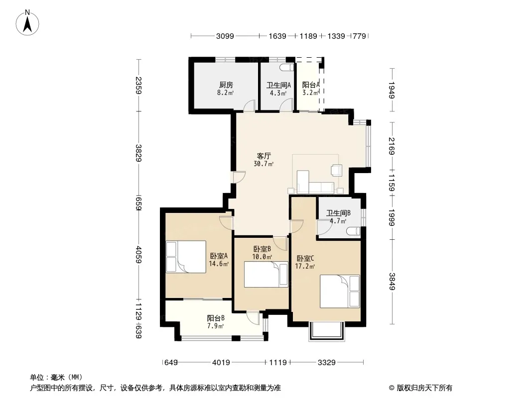 颐和名苑 边套 户型方正 三房朝南 采光很好