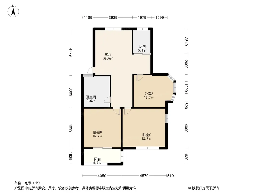 户型齐全,主打户型方正,明卫,明厨,客厅朝南,全明格局三居