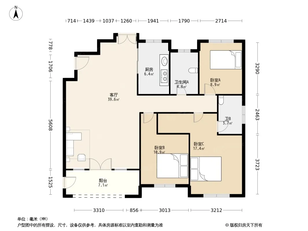 户型齐全,主打户型方正,明卫,明厨,客厅朝南,主卧朝南三居