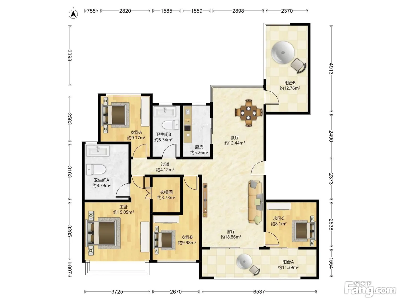 户型齐全,主打户型方正,明卫,明厨,主卧朝南四居
