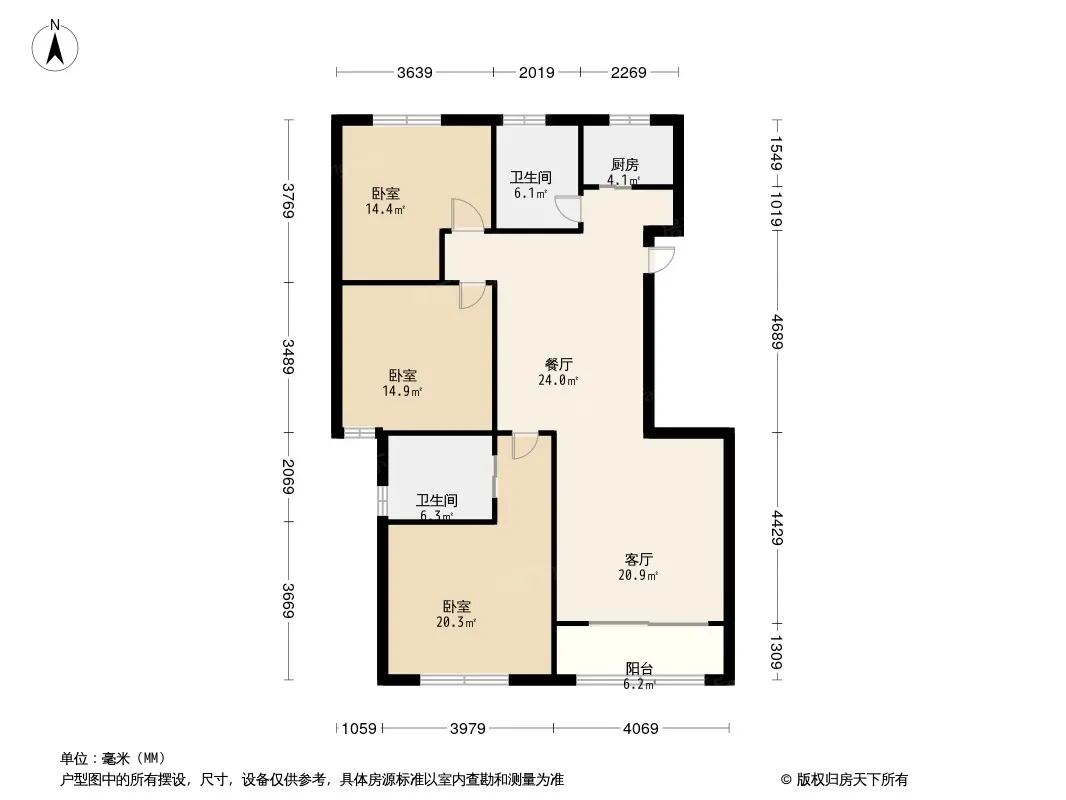 户型齐全,主打户型方正,明卫,明厨,主卧朝南三居