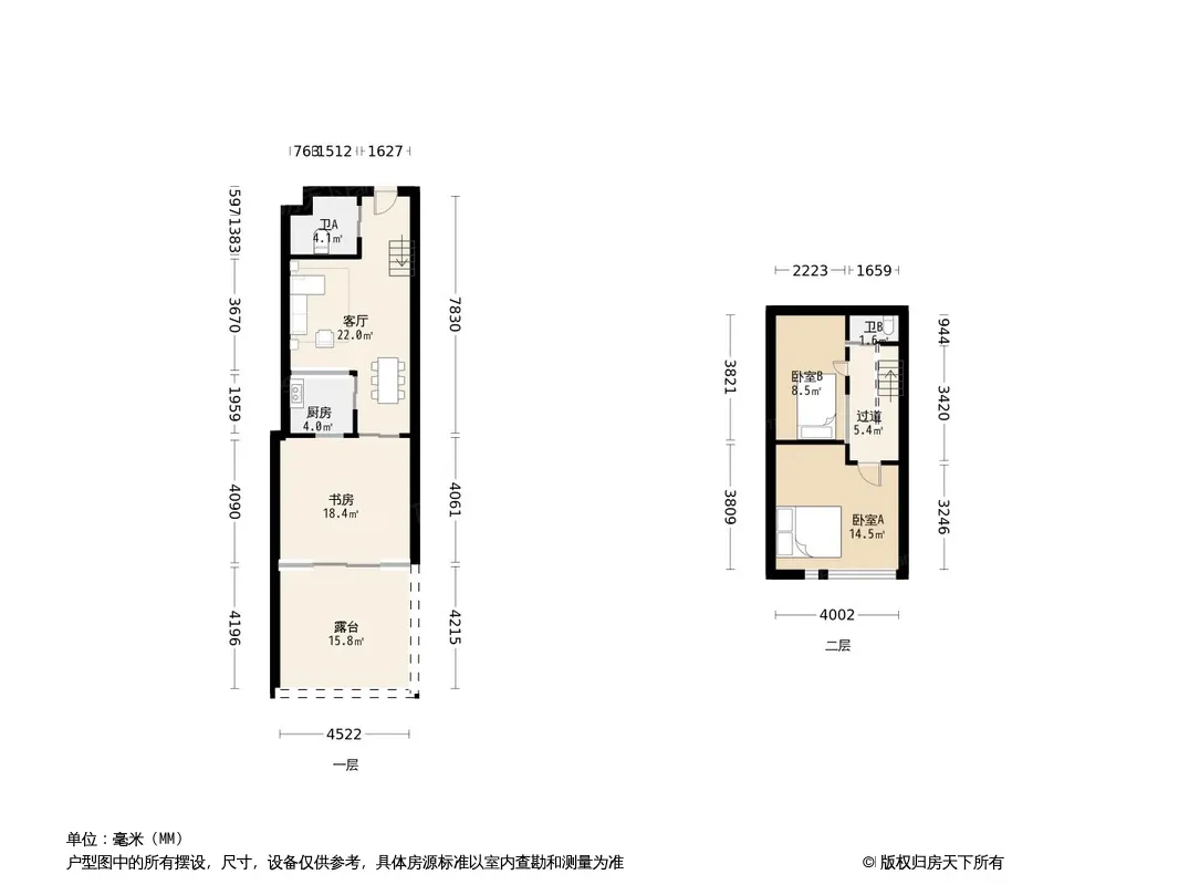 户型为复式公寓 朝南 楼层好,保养好带大花园