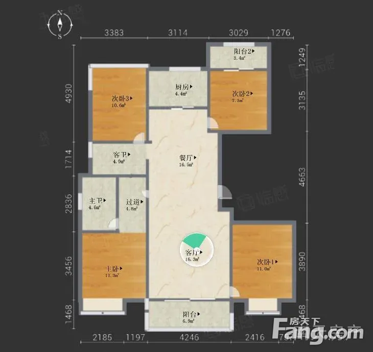 户型齐全,主打独立衣帽间,明卫,明厨,主卧朝南四居