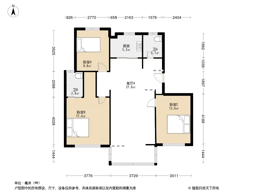 *获取完整户型报告,同时会有免费语音讲解服务