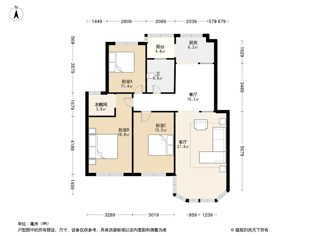 户型齐全,主打户型方正,明厨,双阳台,主卧朝南三居