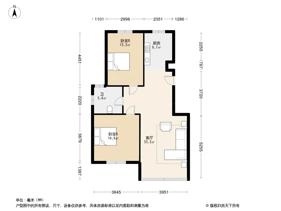 户型齐全,主打户型方正,明厨,明卫,客厅朝南,全明格局,主卧朝南二居