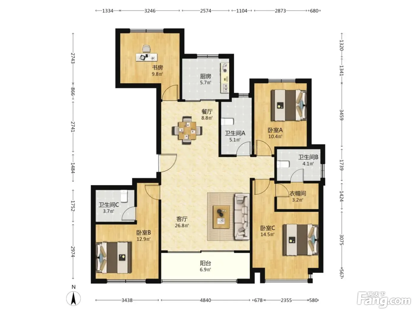 北宸府户型主要有119平-119平的户型方正,明卫,明厨,主卧朝南的三居 、139平-139平的明卫,明厨,双卧朝南,主卧朝南的四居 。