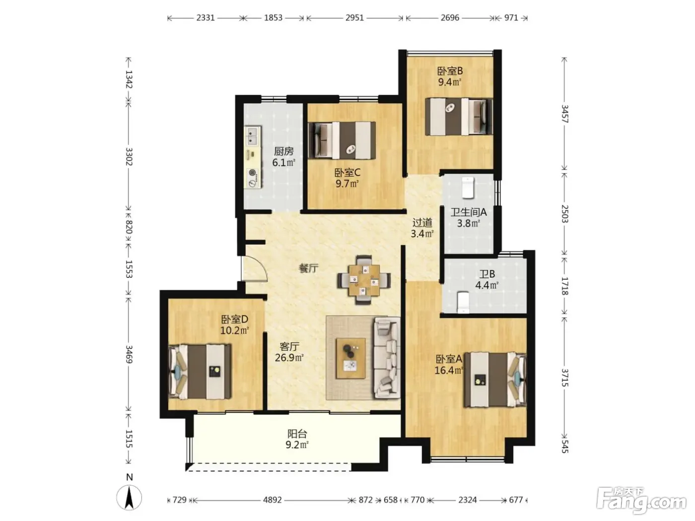 户型齐全,主打南北通透,全明格局四居