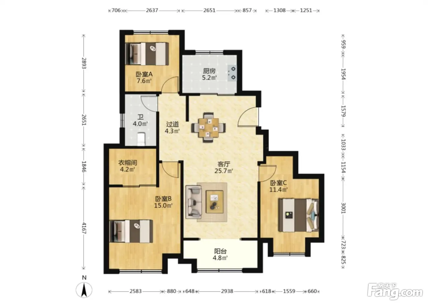 户型齐全,主打南北通透,全明格局三居