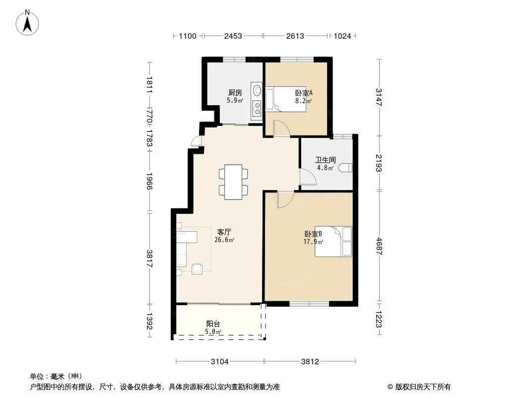户型齐全,主打户型方正,明卫,明厨,主卧朝南三居