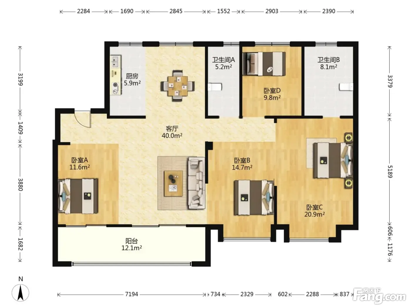维科望江府户型主要有116平-129平的明卫,明厨,主卧朝南的三居 、128平-175平的明卫,明厨,主卧朝南的四居 。
