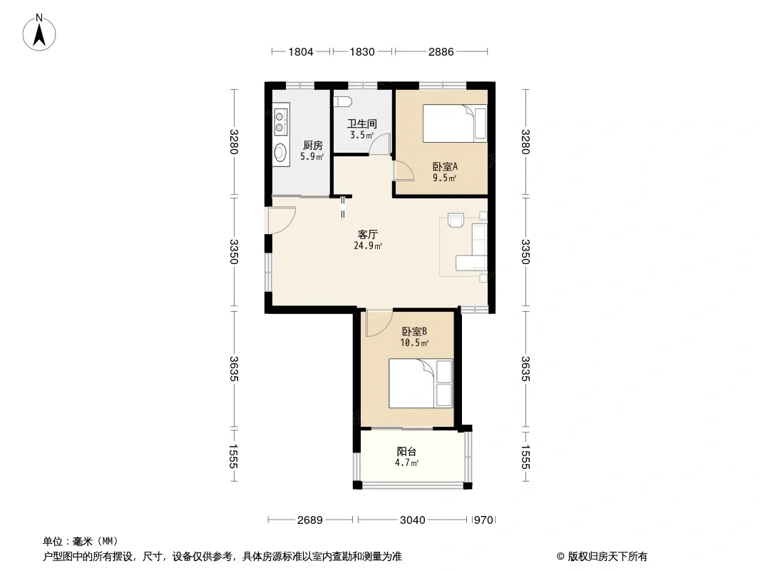 户型齐全,主打明卫,明厨,双卧朝南二居