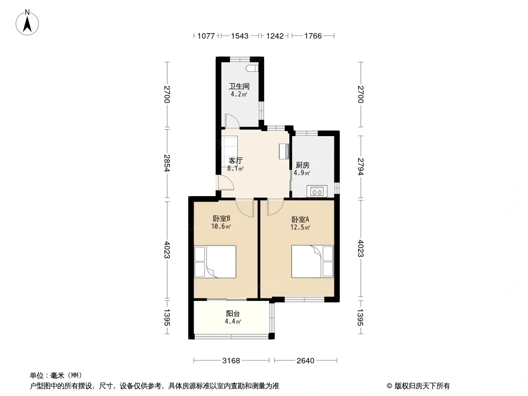 户型齐全,主打明厨,明卫,客厅朝南,主卧朝南二居
