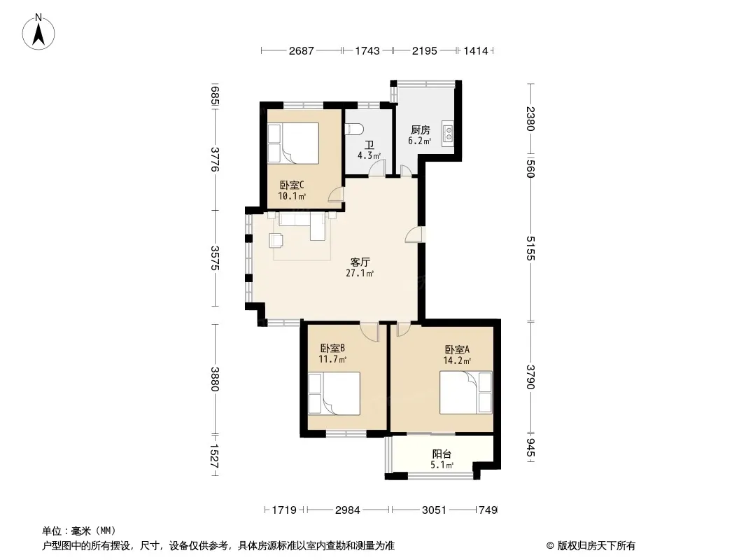 户型齐全,主打户型方正,明卫,明厨,客厅朝南三居