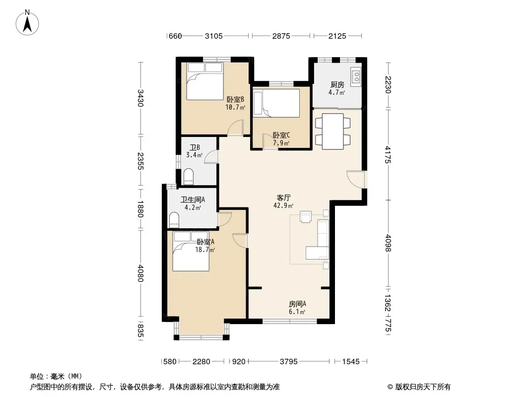 户型齐全,主打户型方正,明卫,明厨,客厅朝南,主卧朝南三居