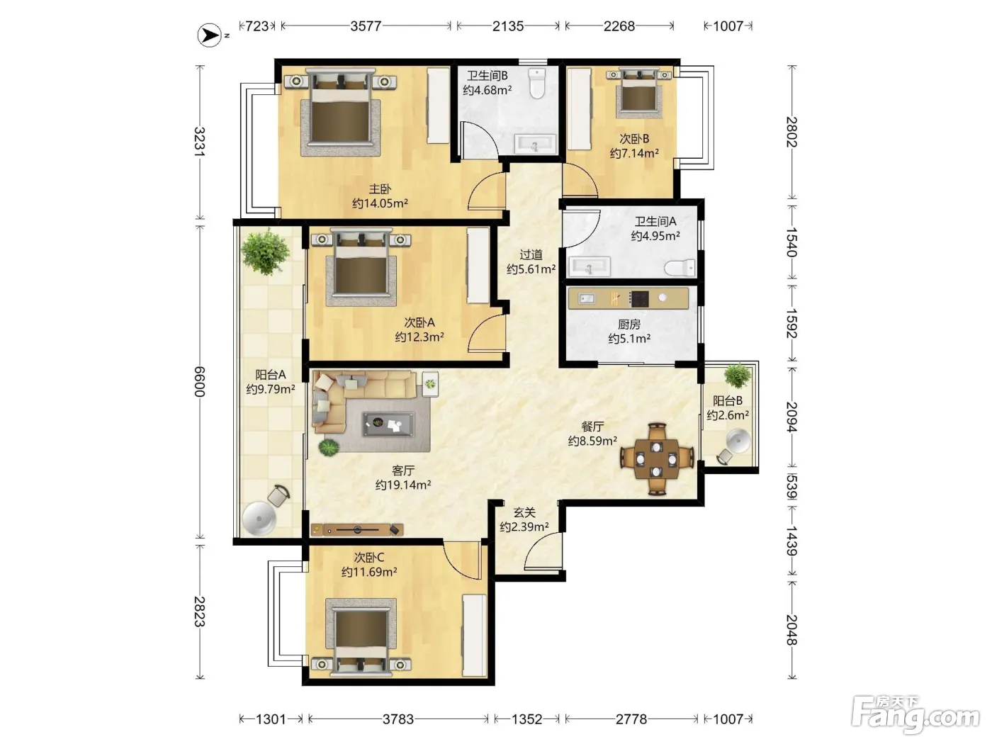 户型齐全,主打客厅朝南,卧室朝南四居