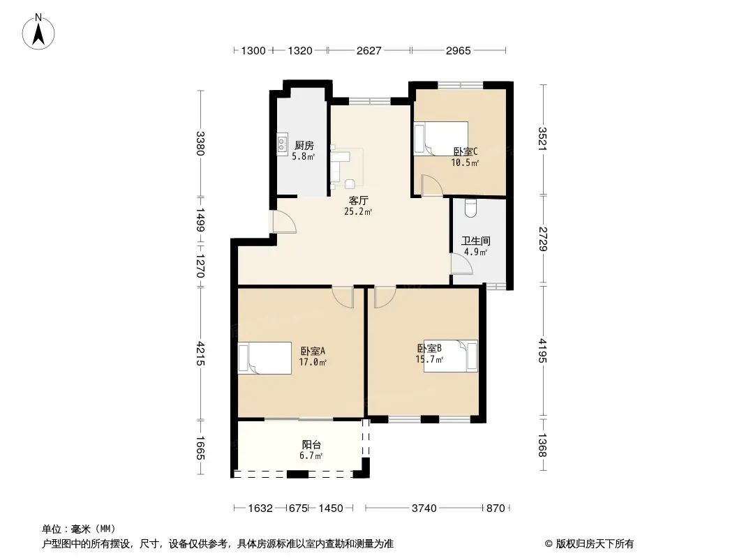 户型齐全,主打户型方正,明厨,明卫,客厅朝南,主卧朝南三居