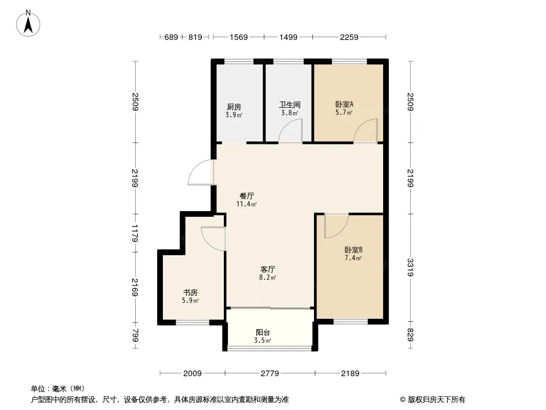 户型齐全,主打户型方正,明卫,明厨,双卧朝南,主卧朝南三居
