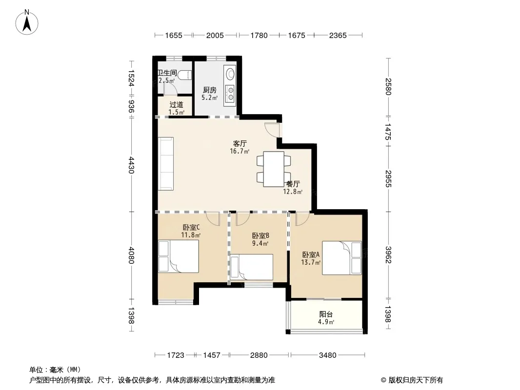 户型齐全,主打户型方正,明厨,明卫,客厅朝南三居