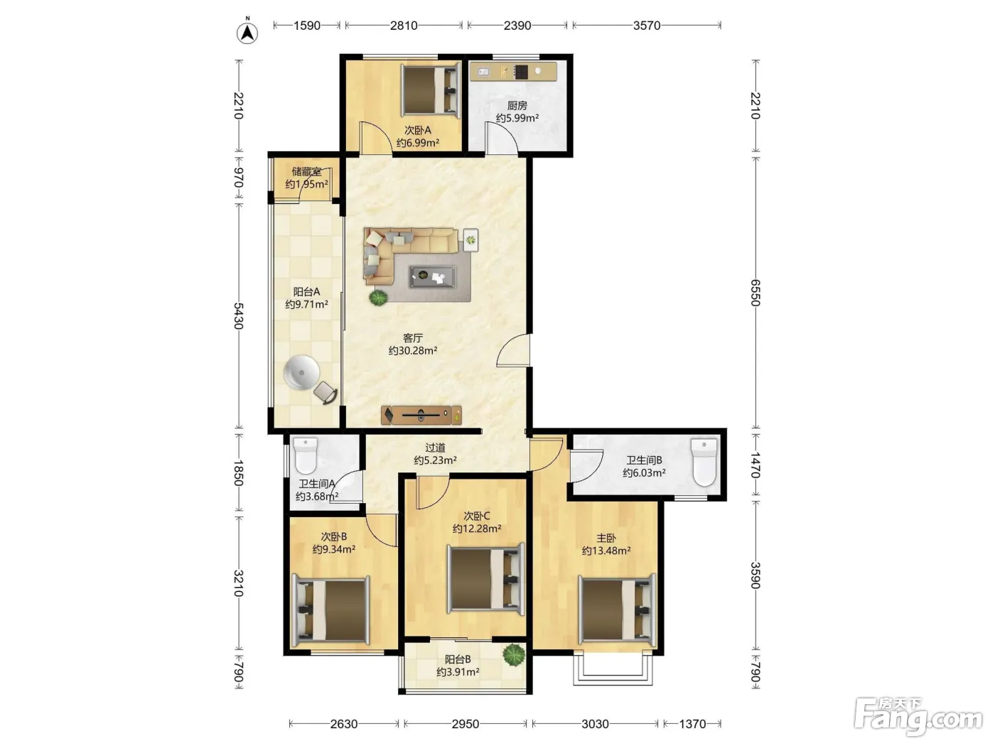 户型齐全,主打户型方正,动静分离四居