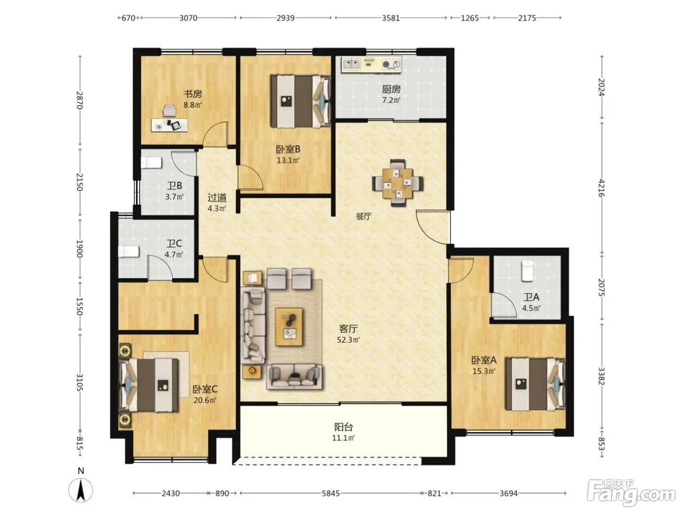户型齐全,主打户型方正,动静分离四居