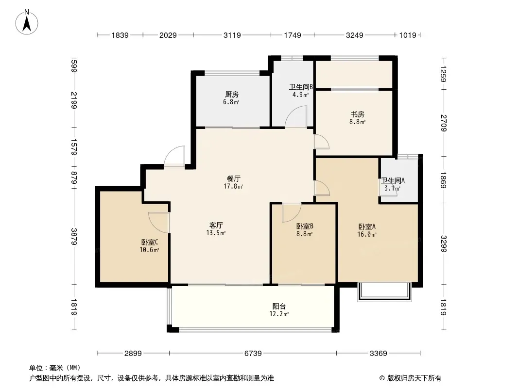 户型齐全,主打客厅朝南,三开间朝南三居