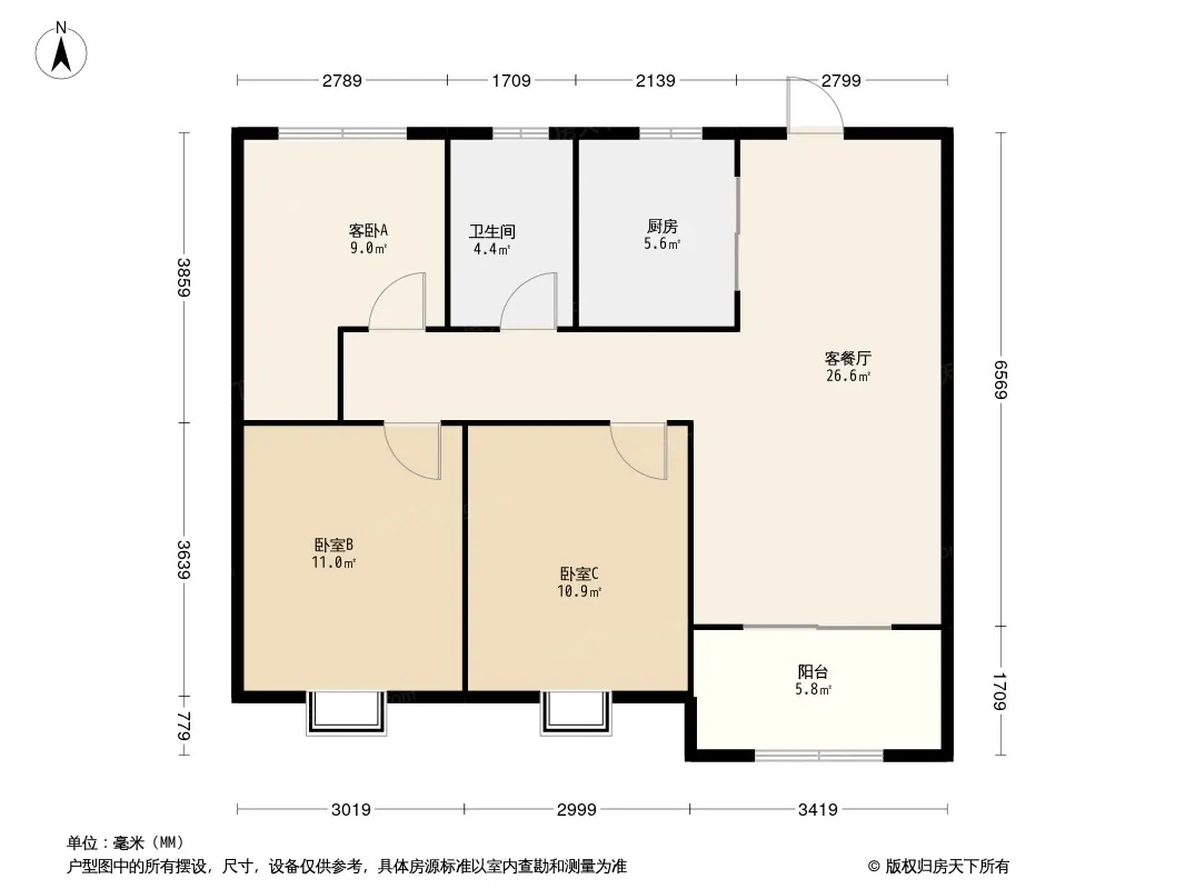 户型齐全,主打南北通透,客厅朝南三居