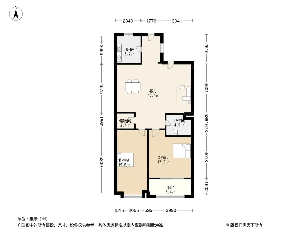 户型齐全,主打户型方正,明厨,客厅朝南,双卧朝南二居