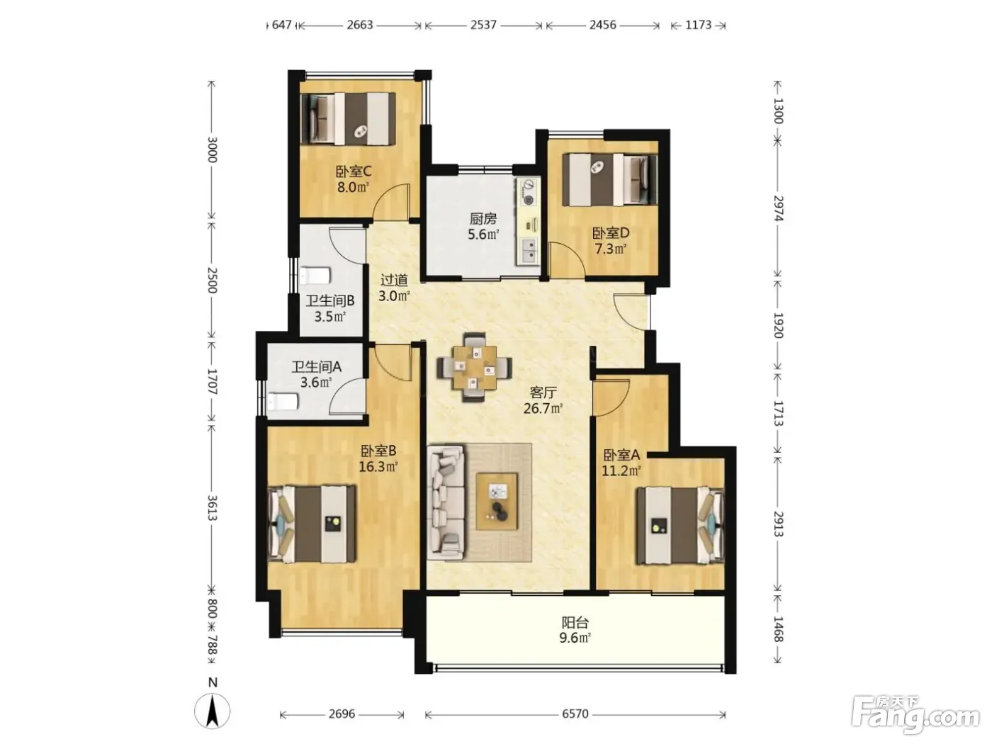 房子是精装交付,四叶草户型,南北通,采光好