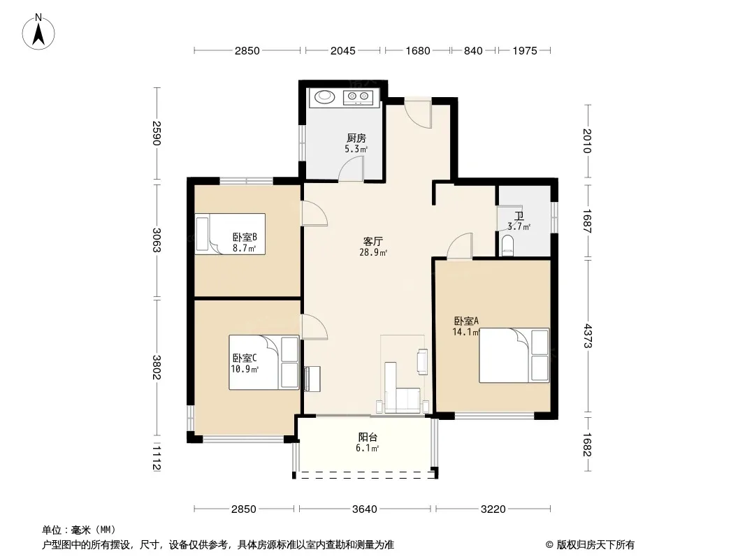 户型齐全,主打户型方正,明卫,明厨,双卧朝南三居