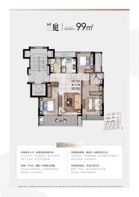 荣安林语芳庭户型主要有86平-99平的南北通透,全明格局,户型方正,主卧套间的三居 。