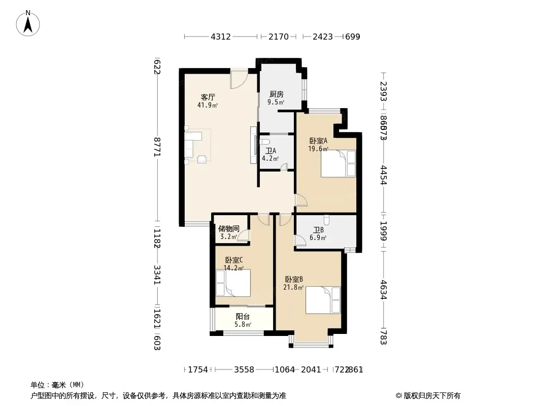 户型齐全,主打户型方正,明厨,明卫,客厅朝南,主卧朝南三居