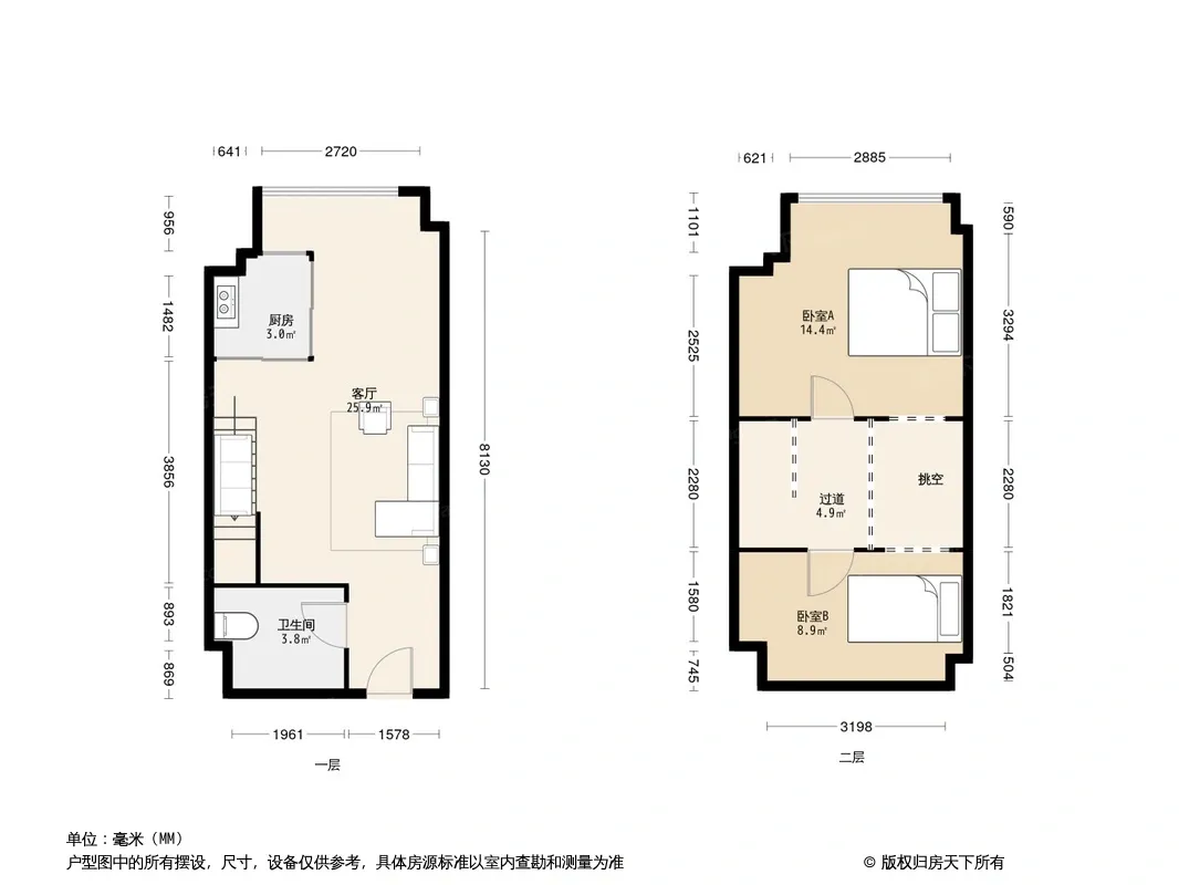 朝南 买一层实际使用两层 低总价