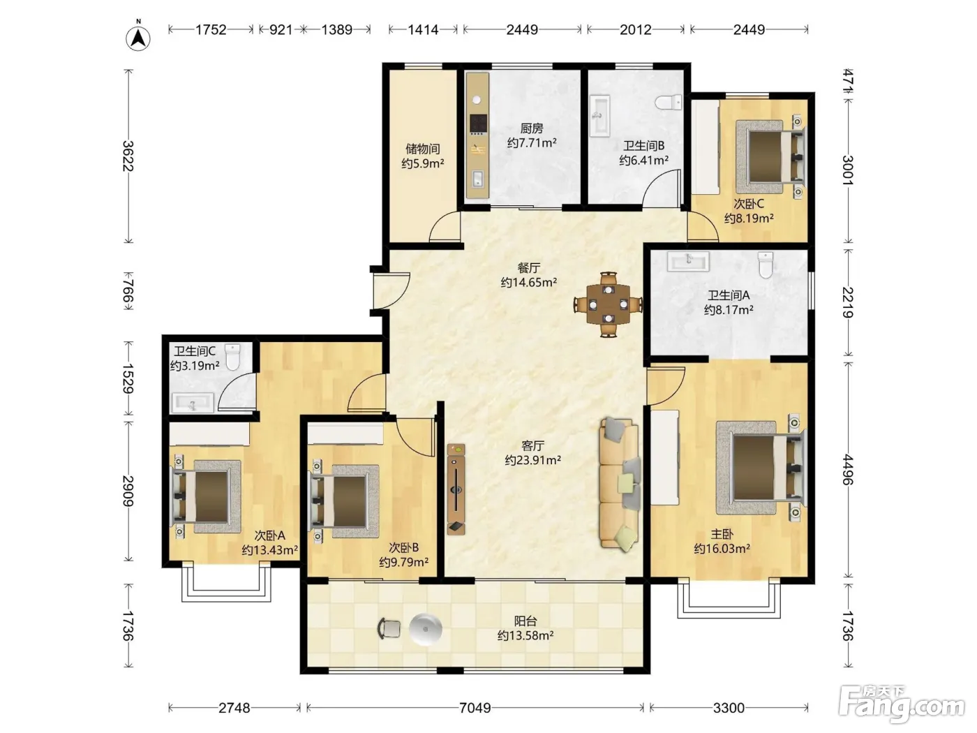 户型齐全,主打南北通透,全明格局四居