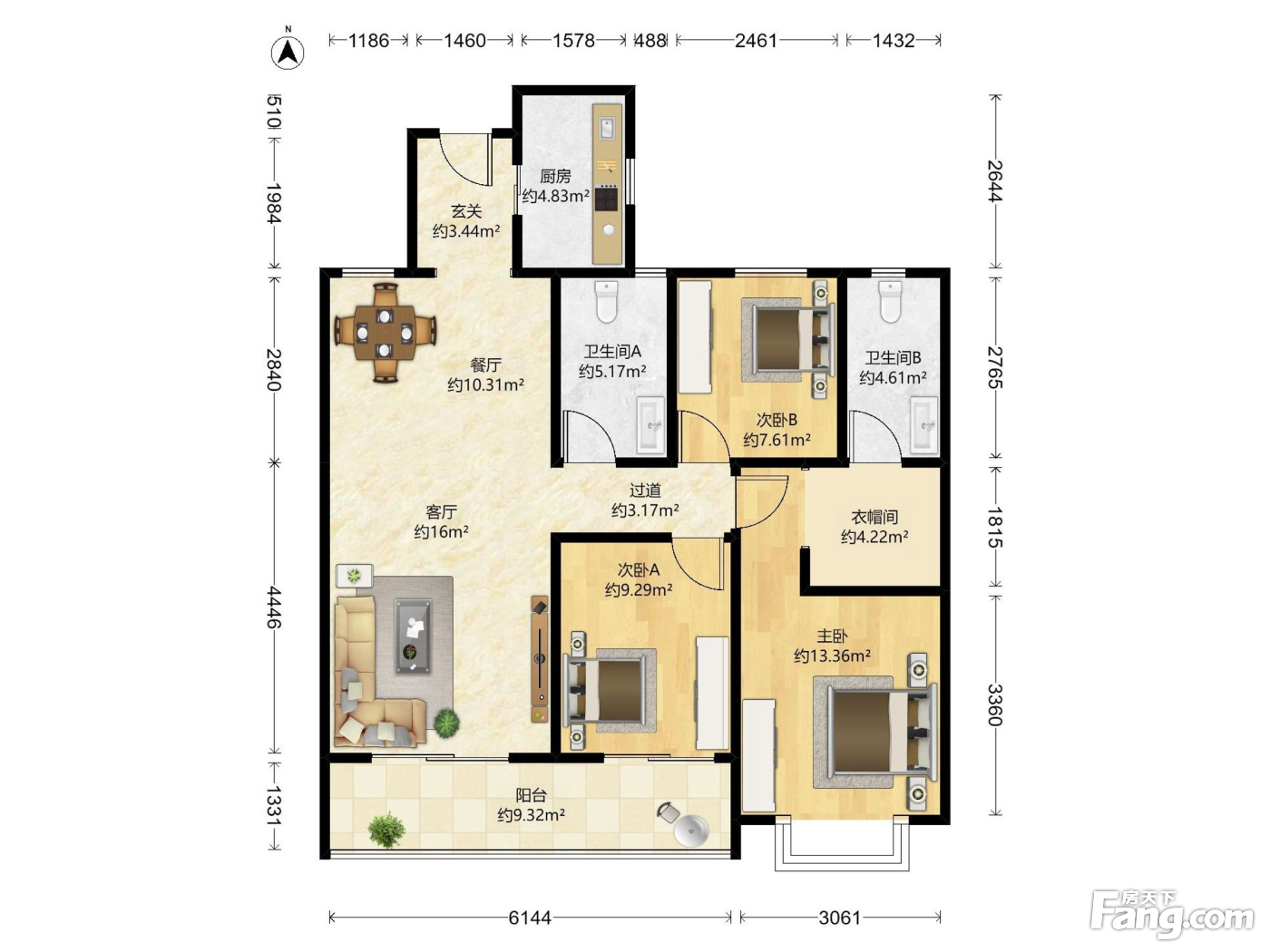 户型齐全,主打南北通透,全明格局,户型方正四居