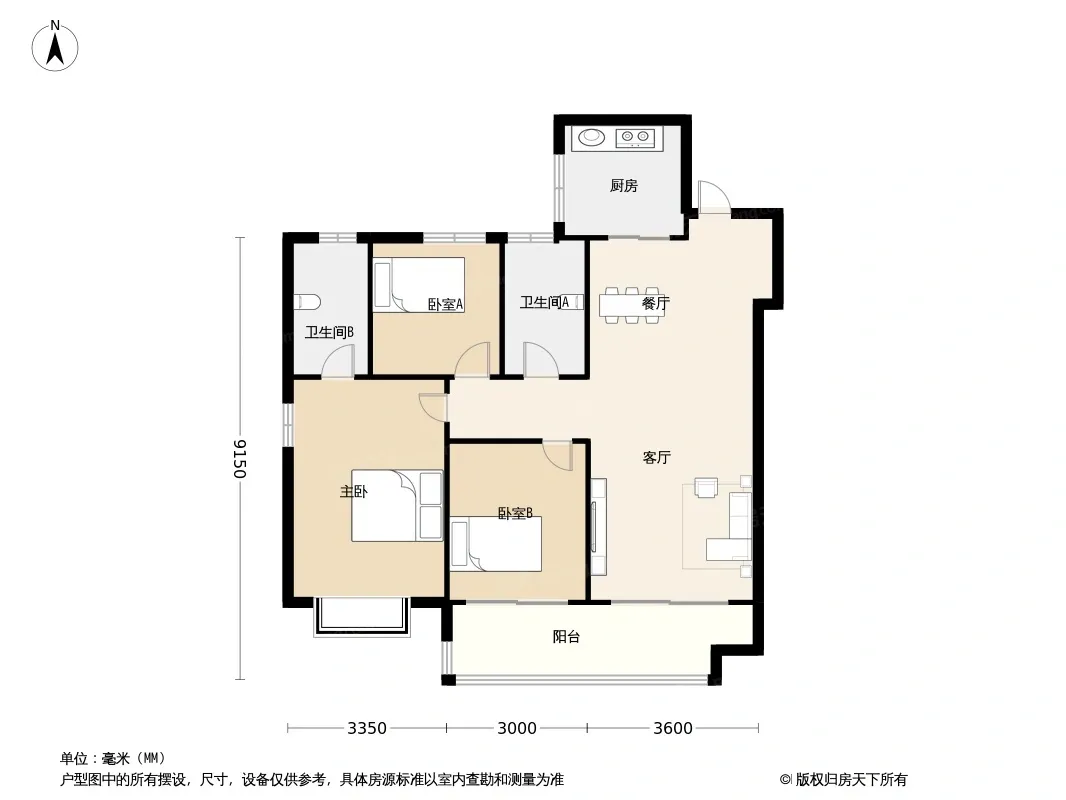 户型齐全,主打南北通透,客厅朝南三居
