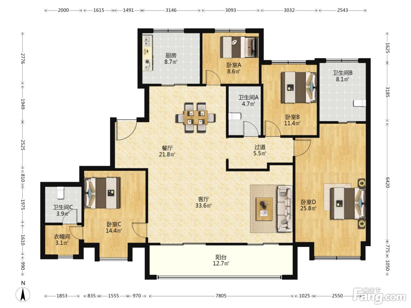 户型齐全,主打南北通透,全明格局,户型方正四居