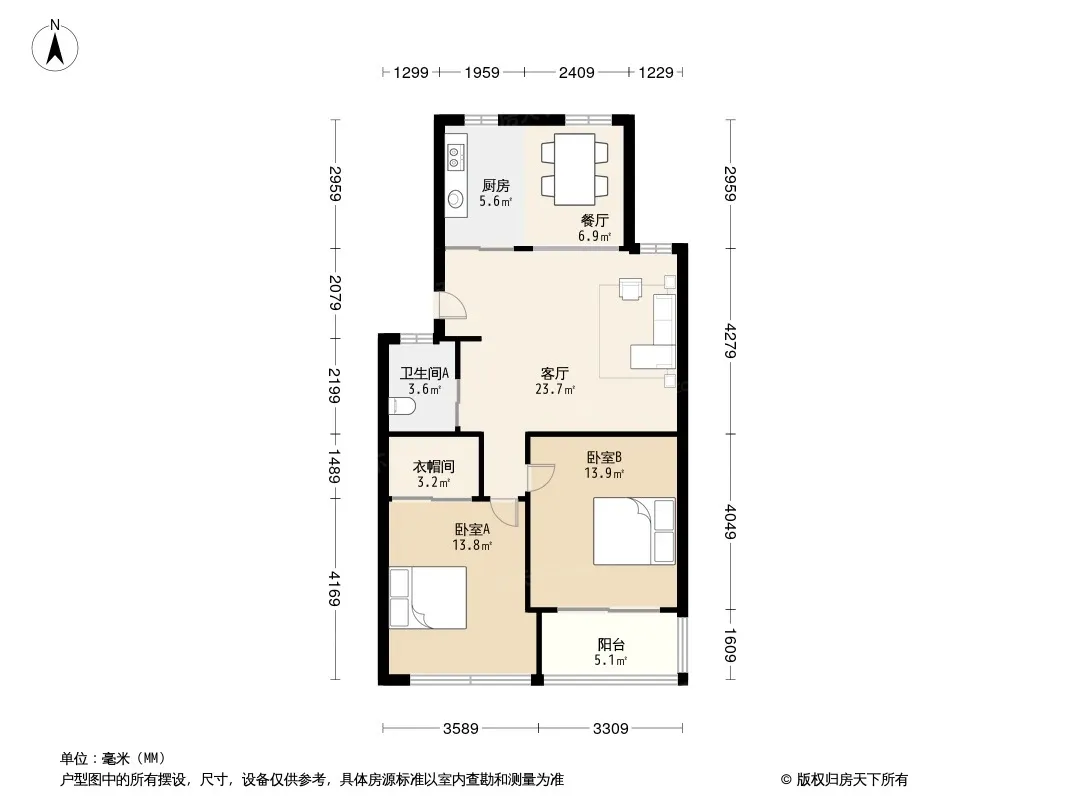户型齐全,主打户型方正,客厅朝南二居