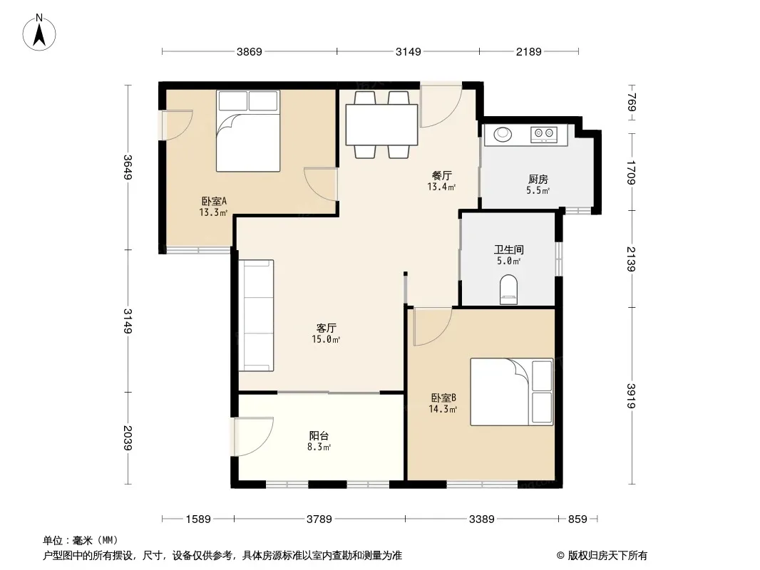 户型齐全,主打户型方正,明卫,主卧朝南三居